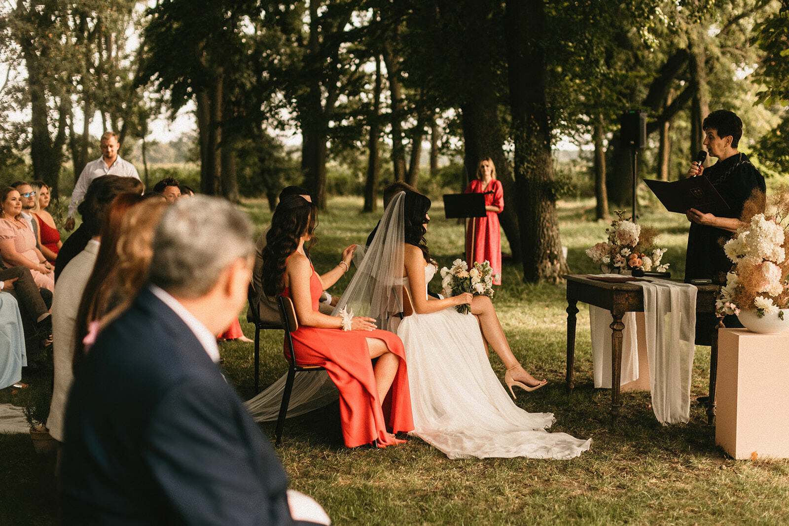 Dekoracja ślubu plenerowego to kompozycje na trzech postumentach - łatwe do przeniesienia w dowolne miejsce imprezy po ceremonii i idealne na niepewną pogodę, dokładnie z uwagi na tę właściwość ;)