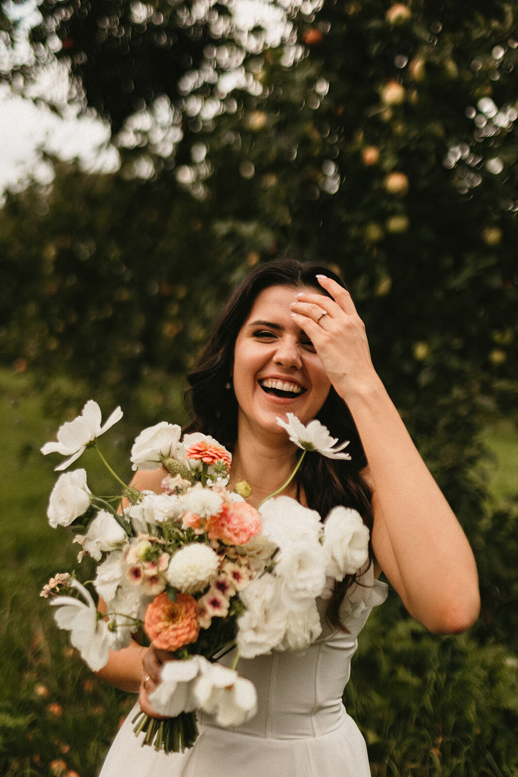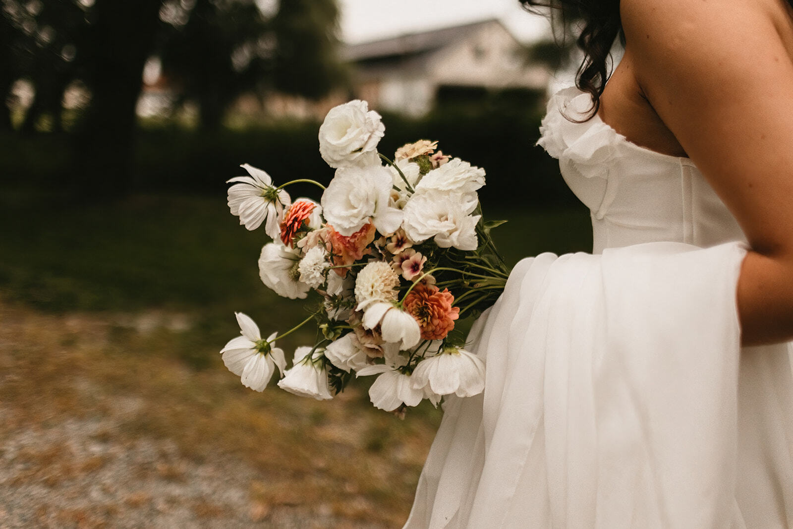 Bukiet Nikoli to delikatna kompozycja z sezonowych kwiatów - pomponowe dalie, malutkie cynie, polska eustoma oraz białe kosmosy nadające wyjątkowej lekkości.